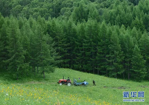 工人在塞罕坝机械林场千层板林场内运输苗木(2013年7月11日摄)。首都北京向北400多