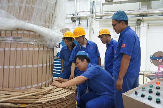 9月5日下午,在A201711K09新型电抗器线圈生产现场,保变电气设计部电气室主任杜振斌正和他的两位同事,与制造中心线圈车间绕线组骨干面对面交流,优化设计方案,共同解决线圈绕制过程中遇到的问题,提升产品质量。