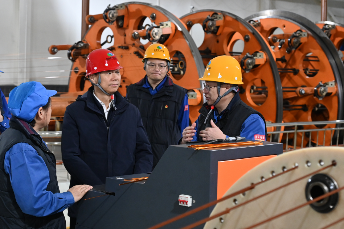 在线材公司调研时许涛实地考察了研发中心、检测中心和生产中心,详细了解第三代新型卧式高质高效数字环保扁线漆包机研发以及高性能漆包线生产情况,实地查看通用型全自动扁线冷接机焊接工艺流程。他指出,线材公司要结合自身定位,立足绿色低碳智慧工厂建设,发挥规模效应与自身优势,让产品走向国际市场。要一以贯之加强生产控制、环境控制,在巩固现有成效的基础上不断实现新的进步。要跳出当前维度,加强新材料和前沿技术研发攻关,提升技术实力,引领行业进步。要强化品牌战略意识,推动品牌形象与行业地位的深度融合,助力拓展更广市场。